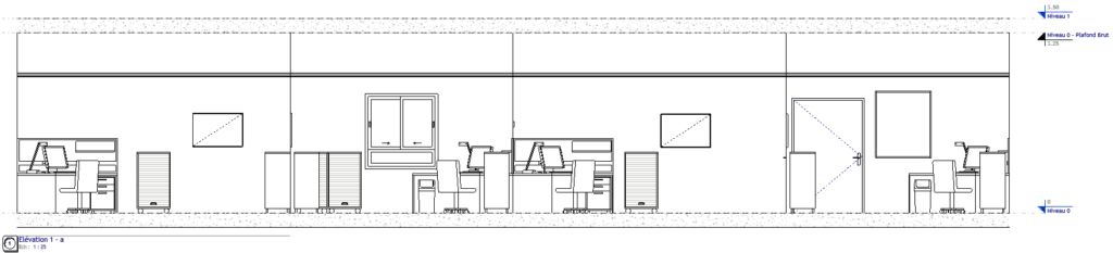 Revit a généré 4 élévations qui ont pour limite la taille de la pièce en largeur
