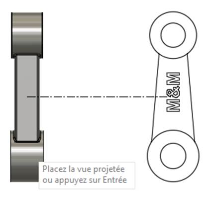 Dans cet exemple, le composant bielle est choisi pour la mise en page 2D.
