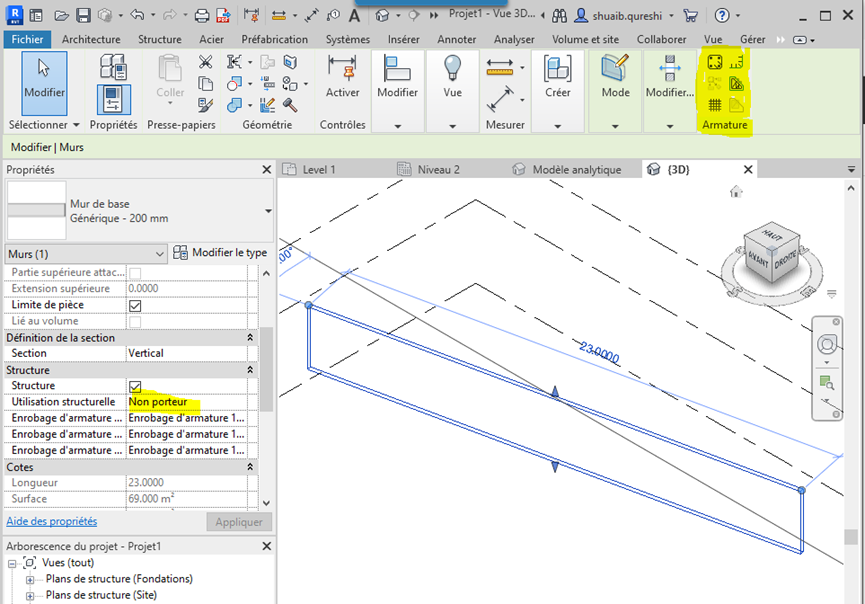 - Nouvelle configuration d’utilisation structurelle : Le ferraillage est possible dans les murs dont l’utilisation structurelle est définie « Non porteur »
