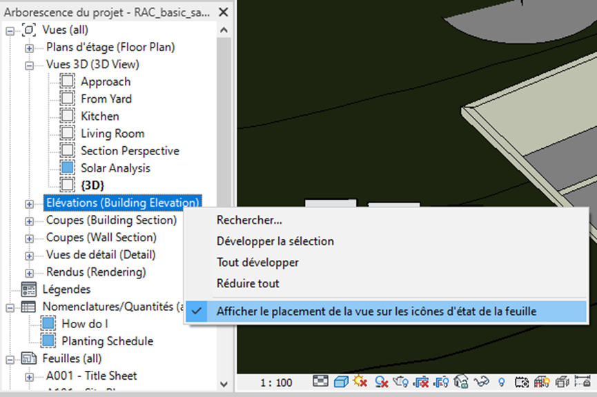 Il est enfin possible de disposer d’un marquage spécifique pour les vues présentes dans les feuilles…(et si un jour nous avions la possibilité de faire un filtre de couleur dans l’arborescence projet….). Néanmoins, vous avez la possibilité de désactiver l’option par un simple clic droit.