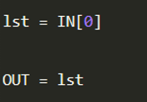 Commençons par donner un nom à l’entrée IN[0]. Ici nous donnerons lst = IN[0]